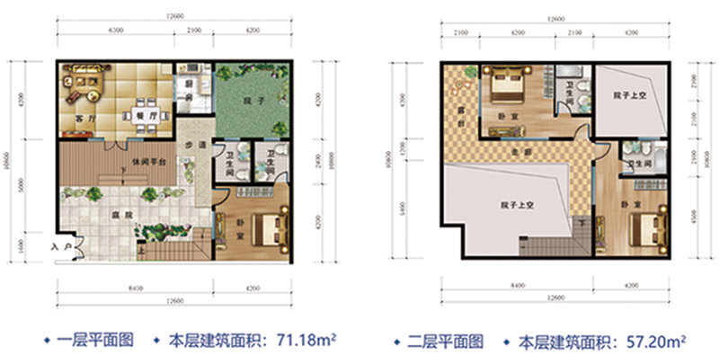 :三室兩廳一廚四衛+兩個院子+贈送露臺·參考面積約:128